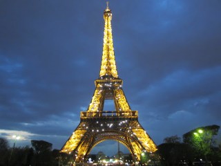 The Eiffel Tower at night.