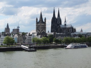 A view of Cologne Cathedral from across the Rhine River.