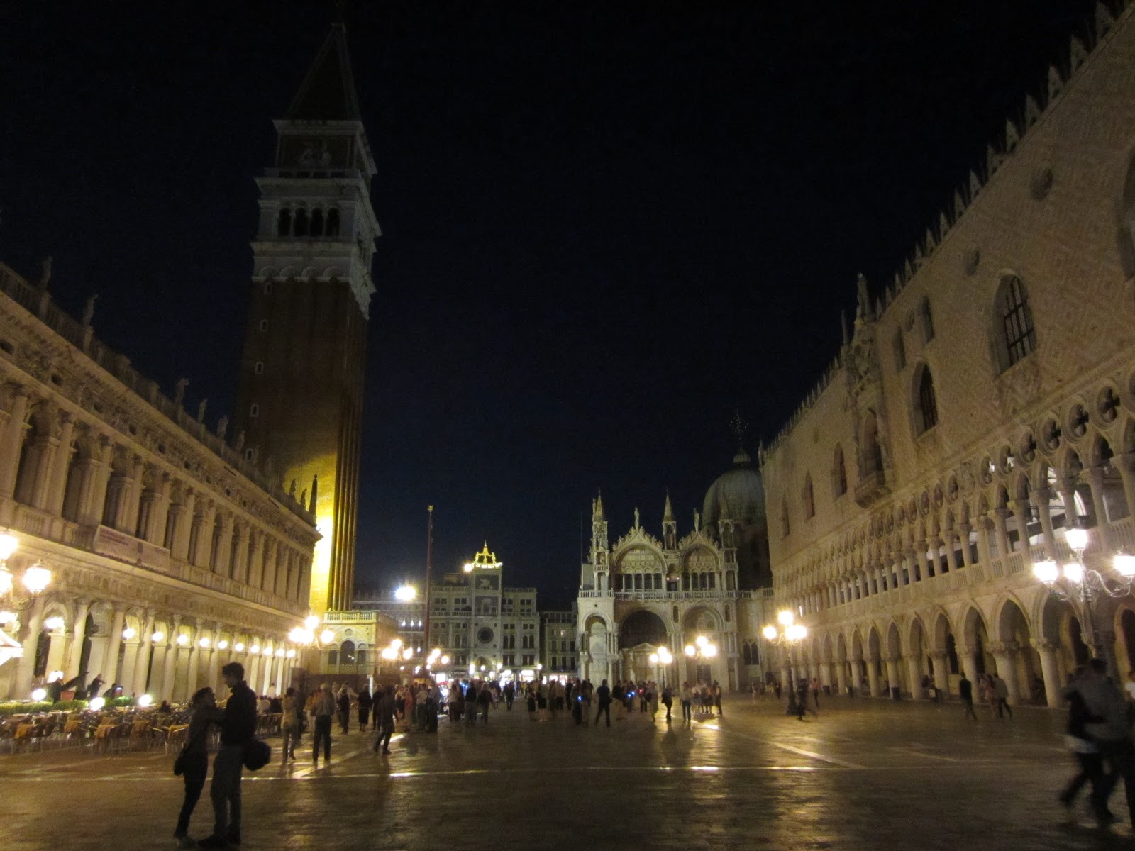 | Here is one view of San Marco Square at night. Not the best photo, but hopefully it gives you an idea as to the ambiance of the place. |