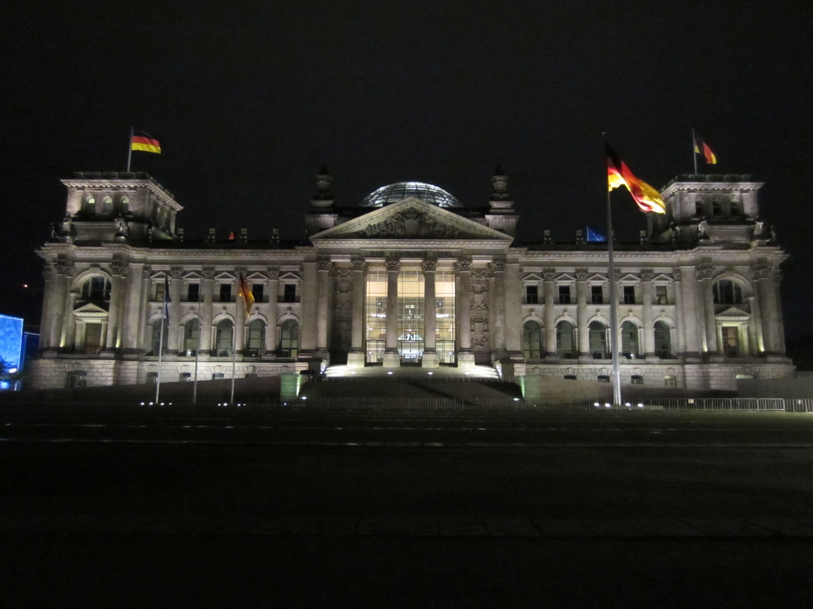 From Brandenburg Gate I moved on to the nearby Reichstag, (the home of the German parliament) where I finished the walk and got the inspiration for the title of this post. After the reunification of Germany, it was decided that the capital would be returned to Berlin, and the Reichstag had some remodeling done to it. The most notable change was the construction of a large glass dome on the roof. During the day the dome channels sunlight into the main chamber of the German parliament, and at night the light from inside the building is sent skyward, creating a faint tower of light. Below is a photo, though you can’t really see the light from the dome.