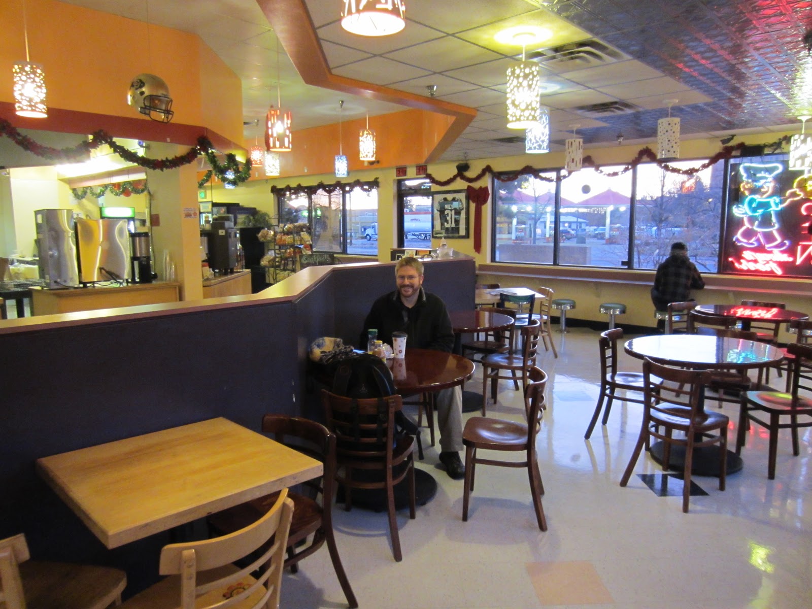 Though I normally order food to-go, Moe’s is also good for a sit down meal with friends. Currently, I meet with my friend Eric there every other week at 7:00am, before most of the crowd shows up. Below is a photo of the inside (sorry it’s a bit blurry).